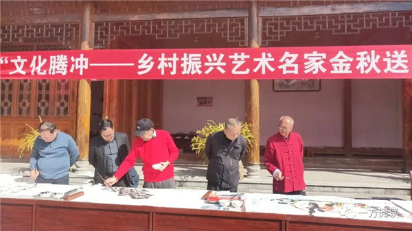 “来了,来了!”10时左右,来自北京、西安、深圳、徐州等地的8位书画艺术名家组成的“乡村振兴艺术名家金秋送暖行动团”,终于来到了腾冲市曲石镇下表院村,开始他们学习宣传贯彻党的二十大精神,送文化进乡村活动之旅。