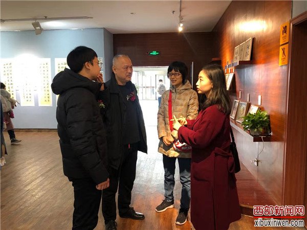 薇苔鹿鸣美术工坊李鹏举为嘉宾讲解办展情况