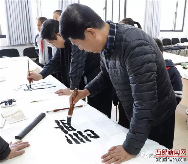 陕西省体育局机关原党委书记、省书法家协会理事、陕西省直属机关书画协会副会长支希贤现场挥毫