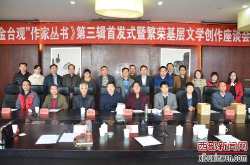 西部新闻网讯(记者 董宁宁)3月18日,宝鸡市金台区委宣传部,区文联联合举办《“金台观”作家丛书》第三辑首发式暨繁荣基层文学创作座谈会。省市文艺名家高建群、王海、李凤杰、韩霁虹、黄建国、霍忠义、吕向阳及丛书作者30多人欢聚一堂,共同祝贺丛书出版和座谈会召开。