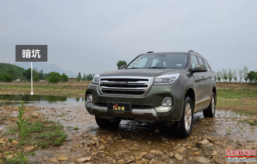 由于在城市里憋得比较久,见到水就兴奋,一时间忽略了观察水面动静来判断水位深浅的意识,车头向右斜着扎进了旁边的暗坑中,此时右前轮已经完全被水淹过,左后轮也悬在空中。得益于H9最大700mm的涉水深度,此时打开前后差速器锁,四个车轮丝毫没有打滑,淡定的完成了脱困,只可惜当时没有留下照片。由于场地的关系,现场没有太多困难路况能够考验H9的“三把锁”,但即便如此,如此强悍的越野装备已经决定了哈弗H9越野能力注定是市场在售车型最强之一。