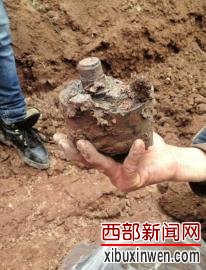 16日上午9点55分,定位工作完成以后,挖掘机开始了现场外围清理。上午10点20分左右,人群中传来一阵欢呼声:一颗子弹头出现了,这颗裹满泥巴的子弹头上有两道清晰的齿轮圈和一些不易辨认的字母编号。