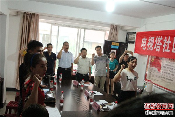 西部新闻网讯 (记者 张丽 摄影 刘国盛)7月5日上午10时,新疆驻陕工作组党委与电视塔社区党支部共建党日活动在电视塔社区成功举行,本次活动以喜迎“七一”主题党日活动,重温入党誓词,举行了民族团结一家亲“结亲交友”仪式,回顾中国共产党艰苦卓绝的奋斗历程,深切缅怀老一辈革命家不畏艰险、共同奋斗的峥嵘岁月,接受了一次深刻的革命传统教育。本次活动由电视塔社区书记王晓龙主持。西部新闻网全程报道本次活动!