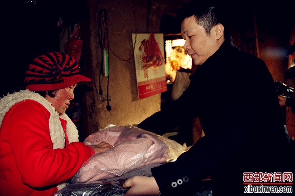 在现场,接受捐赠的贫困群众都难以掩饰内心的喜悦和激动。送温暖首先来到了一户老人家里,很难想象的到,这么冷的天老人的屋子竟然四面透风,老人穿的衣服也很单薄。我们送来的羽绒服非常及时,老人接过羽绒服连连道谢,苍老的脸上流露出感激的神情。还有一家因病致贫的家庭,家庭成员因为常年患病,经济拮据,温暖的祝福给这个家庭带来了股股暖流。时至中午,我们赶到一户家庭,这家正在吃午饭,可是看着陈旧的餐桌上连像样的菜都没有,我们及时送上的温暖让这家的女主人留下了感动的泪水。还有一位接受捐助的贫困家庭代表深情的说:“以前总是穿别人救济的旧棉衣,家里穷,买不起新的,别说羽绒服了。现在我也穿新羽绒服了,感谢陕西徽商集团的朱总,柏总,感谢《徽苑》杂志社,感谢西安在线网。”让我们难以忘怀的是一家聋哑人夫妇,他们虽然无法用言语表达感激之情,但是从他们的神情举止能看出他们内心的情感。