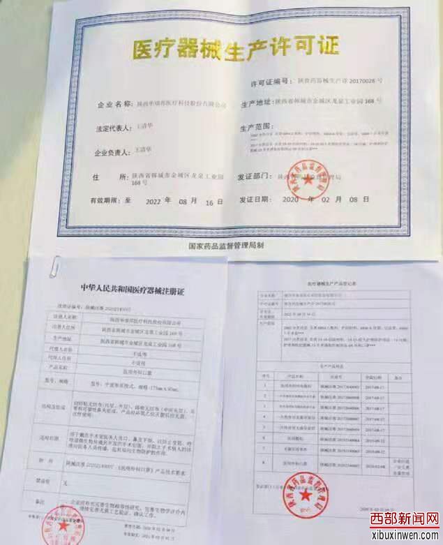 本网讯:(通讯员:辛涵)在全国人民同心抗击新型冠状病毒感染肺炎的日子里 。2020年2月9日,省药监局二级巡视员王志宏、省新药审评中心主任郝武常专程来到韩城,为陕西华瑞邦医疗科技股份有限公司送去编号为陕食药监械生产许20170028的《医疗器械生产许可证》及编号为陕械注准20202140007的医用外科口罩注册证。该医疗器械生产许可证和注册证的颁发,标志着陕西华瑞邦医疗科技股份有限公司正式取得医用外科口罩的生产许可,也标志着陕西首家医用外科口罩生产企业在韩城诞生。韩城市代市长亢振峰,韩城市委常委、副市长张新庄等领导出席颁
