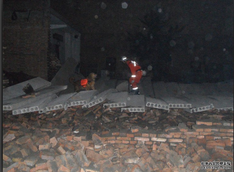 昨晚9时,在西安市雁塔区翟家堡村一队发生坍塌的在建民房处,记者看到,约二三百平方米的工地已成一片废墟,满地是坍塌的砖块和楼板。西安市公安局雁塔分局电子城派出所民警接警后赶到现场。陕西省消防总队西安消防队员用搜救犬搜救。从晚上9时40分到10时50分,经过3轮搜寻,并未发现生命迹象。