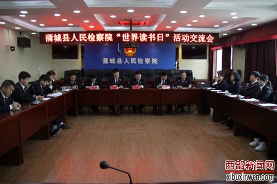 西部新闻网讯 (记者 张红侠 通讯员 李婕)为迎接第21个“4.23”世界读书日,倡导“读书好、好读书、读好书”的文明风尚,推进“学习型检察院、学习型局科室、学习型检察官”建设,近日,陕西省渭南市蒲城县人民检察院组织全院干警召开“纪念4.23世界读书日”干警交流座谈会活动,掀起全院“读书热”高潮,院党组书记、检察长闫永江和其他党组成员参加座谈会,座谈会由院政治处主任李胜合主持。