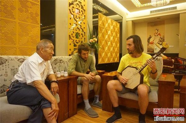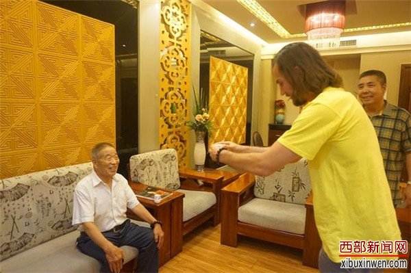 西部新闻网讯(记者 张丽)7月29日上午,三位来自异国他乡的年轻人——美国教师Bryan David Davis、美国留学生Benjamin Giaimo和来自韩国的Jeong Hyun Ji慕名而来,在西安拜师皮影戏碗碗腔名家王进法老先生,学习同朝皮影的演唱和伴奏艺术。