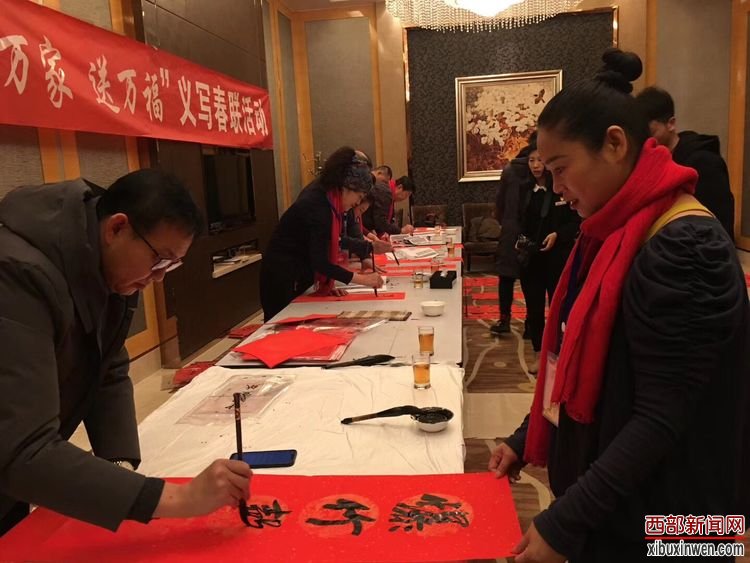 义写春联继续中......元月30日上午中榜协延安基地、圣地书画院、楹联学会、文化志愿者总队的志愿者来到延安枣园唐乐宫为员工义写春联活动。这是2019年新春即将来临之际的第十次义写春联活动!