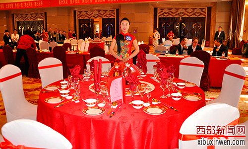 延安枣园宾馆参赛选手展示的中餐宴会设计与摆台