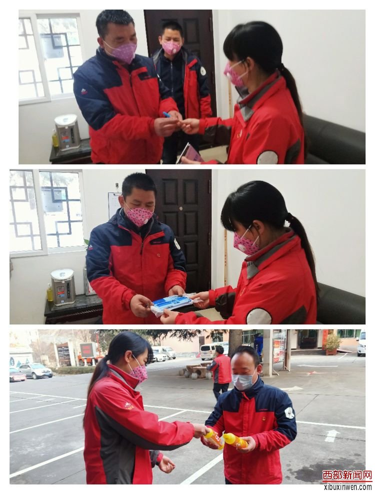二是克服一切困难,加强物资保障。积极响应,多方筹措,第一时间购置了口罩300个、手套300副、体温计200个、84消毒液10箱6桶、消毒喷雾剂20余个、红外线测温仪2个等消毒防护物资,为各基层单位和全体职工配发到位。并督导所有职工出门必须戴口罩,认真落实卫生大扫除和大消杀工作,加强防控防范,同时及时为各基层单位配送肉、菜等生活物资,保障职工生活,稳定职工队伍。