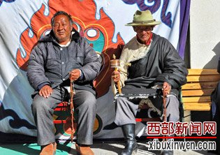 两名五保老人在拉萨“三县老人福利院”当雄五保老人供养中心晒太阳