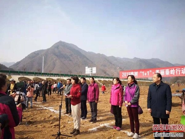 陕西省妇联副主席党洁致词并宣布植树活动开始。