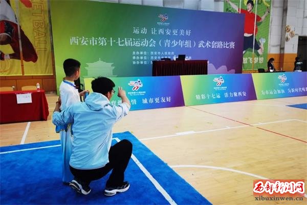 在近日结束的西安市第十七届运动会(青少年组)武术套路比赛中,曲江二中七年级二班郭嘉琦同学表现突出。凭借出色发挥,郭嘉琦同学代表曲江新区荣获男子甲组长拳+刀术全能第三名的优异成绩。