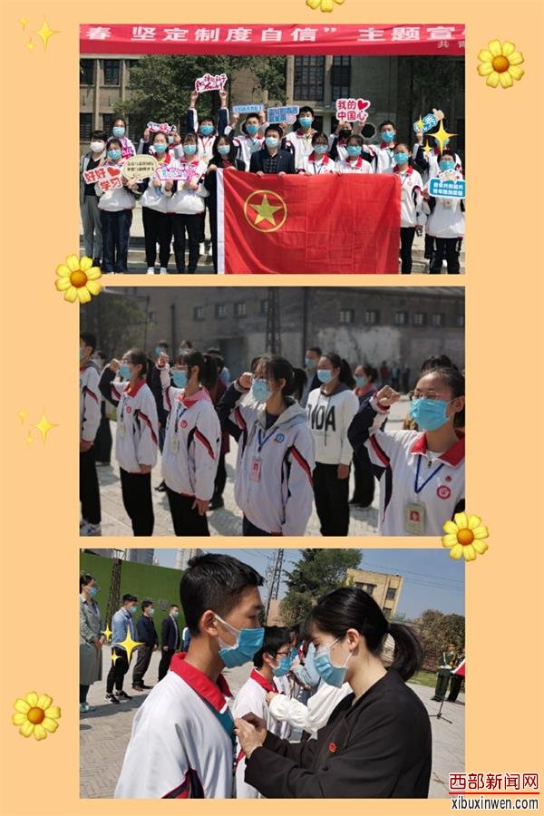 “我志愿加入中国共产主义青年团…”一声声铮铮誓言在金台区长乐塬上空回荡。在五四青年节到来之际,团区委精心策划组织的“绽放战疫青春,坚定制度自信”主题宣传教育实践活动,在长乐塬工业遗址公园这个充满抗战记忆、承载革命精神的圣地举行,宝鸡市卧龙寺中学的15名同学有幸参加了活动,并在这里庄严宣誓入团,在参观学习中重温历史,在感悟精神中涤荡灵魂,经历了一场难忘的入团仪式。部分学校团员代表和全区各界青年代表共50余人参加了此次活动。
