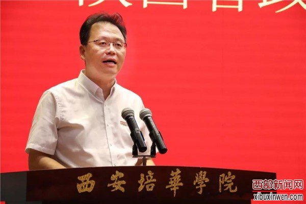 西安培华学院理事长姜波博士应邀致辞,他对各位领导和嘉宾的到来表示了热烈欢迎,他提到,培华自1982年建校以来,历经风雨,但不忘初心,始终坚持“以人为本”的教育理念,致力于学生的发展、成长。今年,学校迎来90周年校庆,培华人一定会在新时代中国特色社会主义理论的指引下,艰苦奋斗,以创办双一流大学、培养高素质人才为目标,开创百年培华的美好明天。