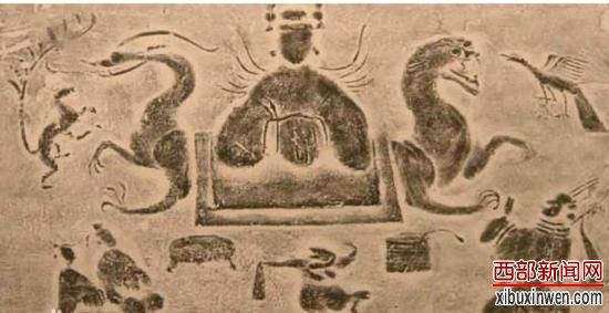 四川省成都市新都区出土的汉代西王母画像砖拓片