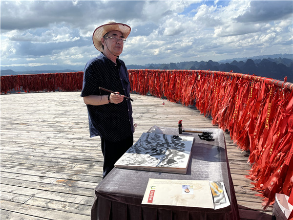 凤凰于飞,和鸣阳朔。如意索道,陕旅争峰。7月中旬,著名文化传播学者、国家二级教授、著名画家、中国企业文化促进会中小企业委员会副会长、陕西广电书画艺术研究院院长李荣;青年文化学者、书法家、中国品牌推广第一人、西部新闻网总编辑张龙;著名书法家、国家一级美术师、陕西广电书画艺术研究院文化艺术顾问李克利应企业之邀赴桂林阳朔考察文旅企业,就文化赋能企业品牌建设,助力乡村振兴、增强文化自信,重塑企业文化展开调研,并在漓江上挥毫泼墨,实景写生,寻找中国山水画的创作灵感。