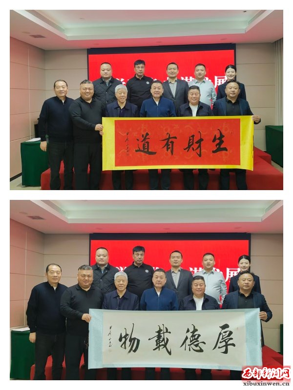 座谈会上,双方围绕党建与会建整合,会员服务创新,运营管理赋能、跨区合作探索等议题,展开深入交流。交流尾声,济南市徐州商会会长展超代表商会向陕西省江苏徐州商会赠送了两幅寓意深刻的书法作品——“生财有道”与“厚德载物”。两幅作品成为连接两地商会情谊的文化纽带,象征着“以德促合作,以道谋发展”的共赢理念。