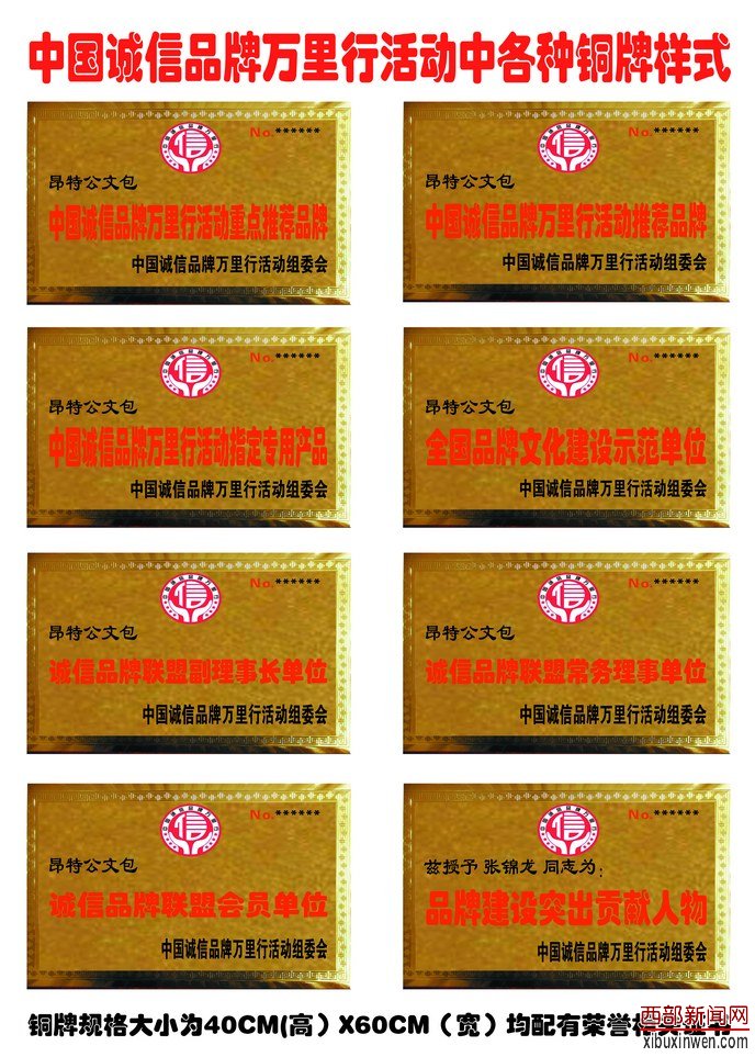 (赠送“诚信推荐品牌”防伪标3万枚)。